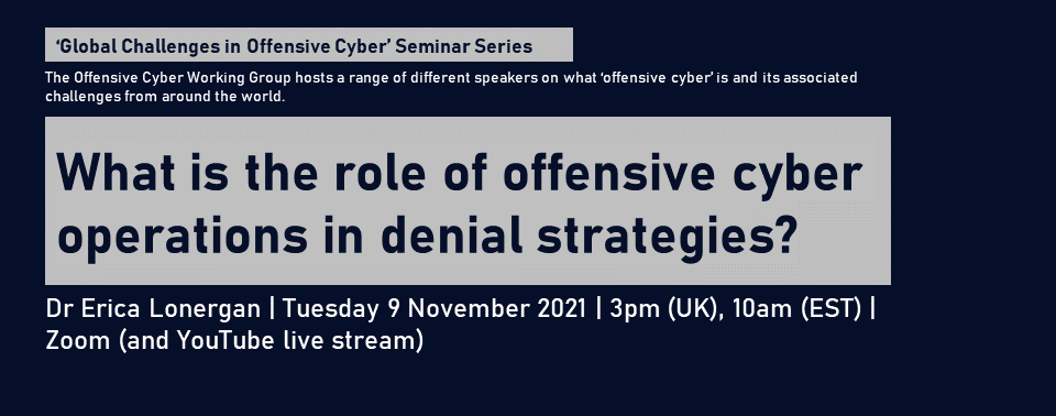 We’re back with our ad hoc seminar series on ‘Global Challenges in Offensive Cyber‘, where we will be inviting a range of speakers from across different perspectives and backgrounds to discuss offensive cyber.